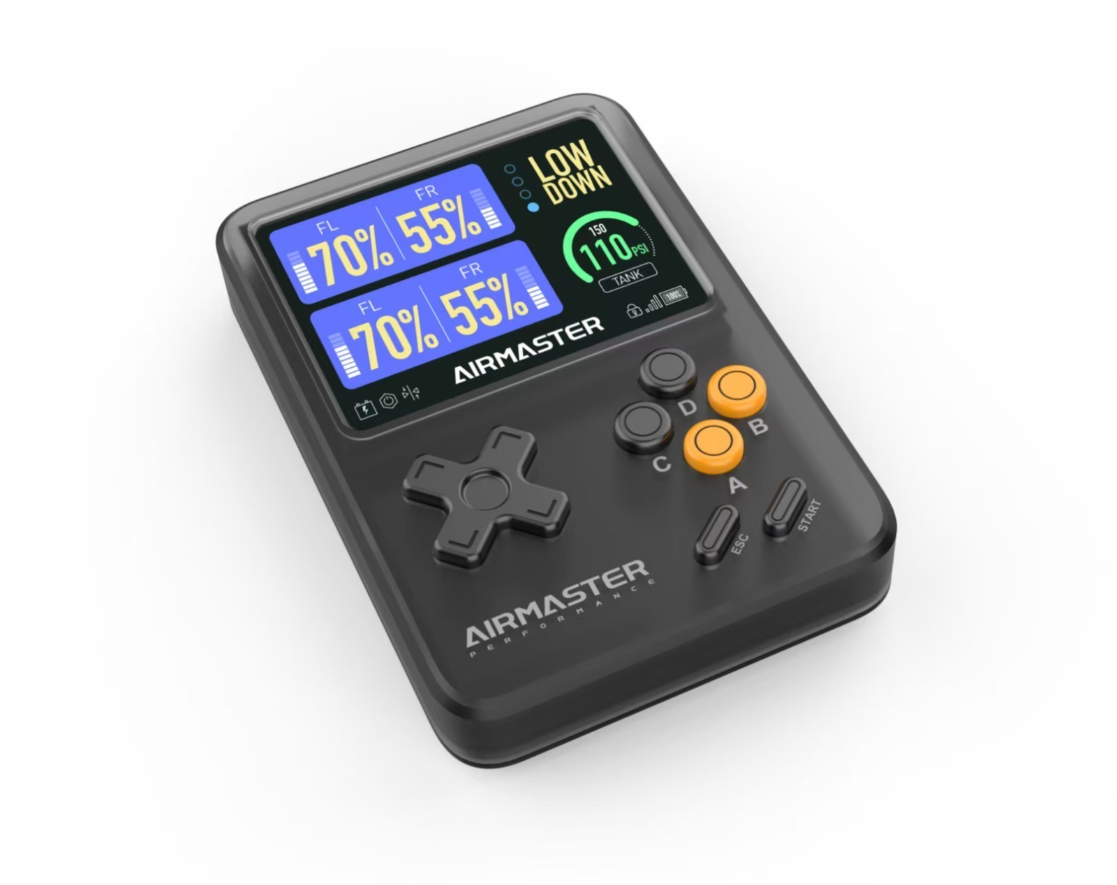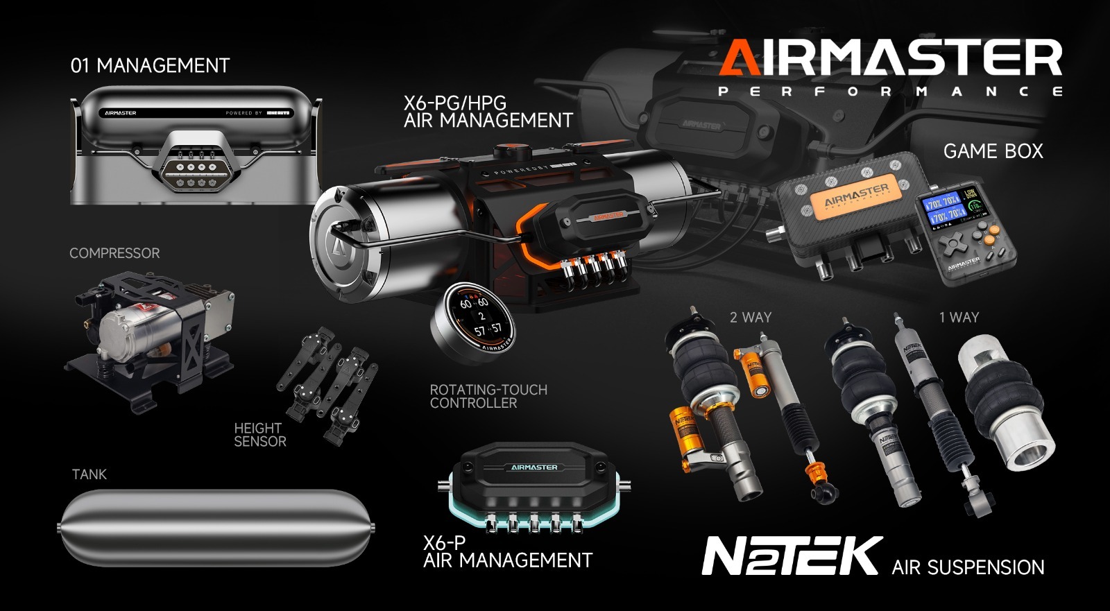 GAME BOX to nowy, inteligentny system kontroli zawieszeniem air ride firmy AIRMASTER, standardowo wyposażony w niezależne sterowanie na każde koło osobno, dostępny zarówno w trybie pamięci ciśnienia, jak i w trybie pamięci wysokości czyli z dynamicznym poziomowaniem podczas jazdy. System posiada 4 pamięci wysokości dowolnie programowane. W połączeniu z pilotem zdalnego sterowania w stylu gier, z kolorowym ekranem i wielokolorowymi przyciskami, oferuje zupełnie nowe doświadczenie w obsłudze systemu kontroli zawieszeniem AIR RIDE.